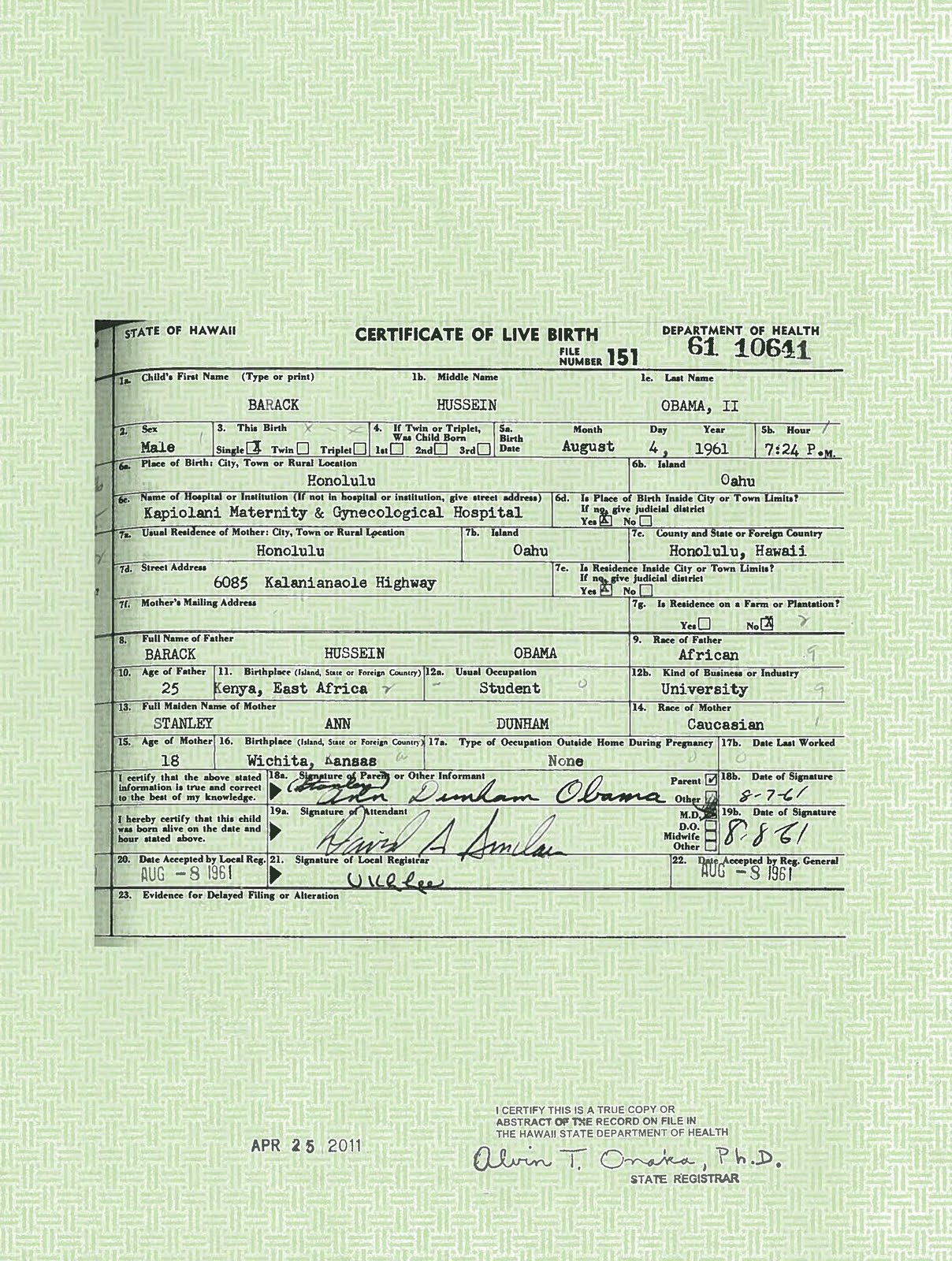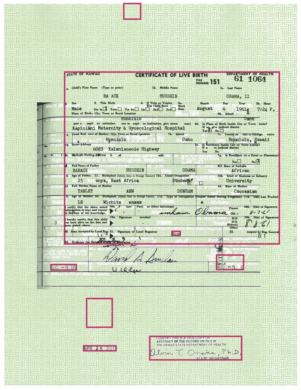 Obama's Birth Certificate Long Form
